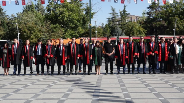 BURDUR’da yeni adli yıl açılışı dolayısıyla Cumhuriyet Meydanı’nda tören düzenlendi. Başsavcı Vekili Yücel Salğin ile Baro Başkanı Meltem Özdemir ‘in Atatürk Anıtı’na çelenk sunduğu törene hakimler, savcılar ve avukatlar katıldı. Saygı duruşunda bulunulması ve İstiklal Marşı okunmasının ardından program Adalet sarayı bahçesinde devam etti.