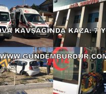 BURDUR’da iki otomobilin kavşakta çarpıştığı kazada 7 kişi yaralandı.